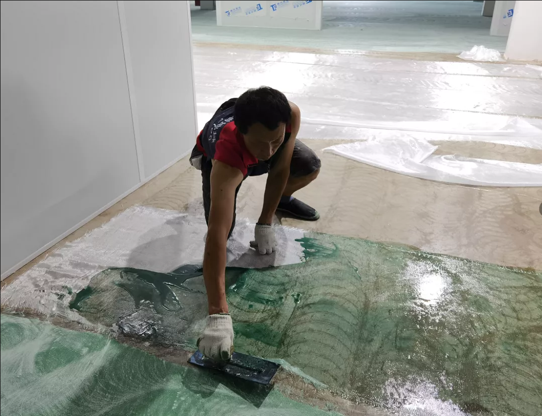 3、玻纖布鋪設(shè)和中涂層施工: